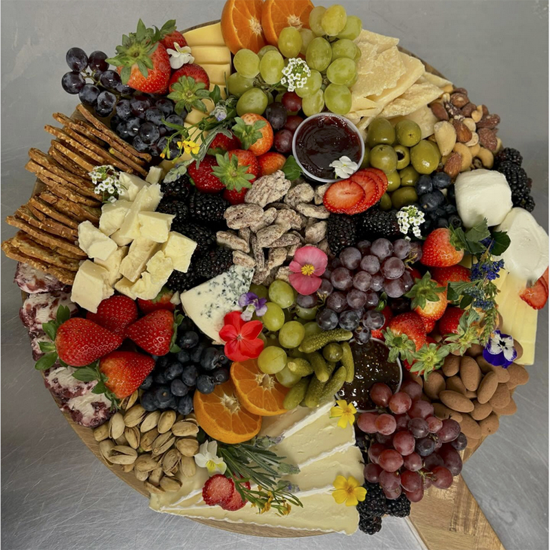 A custom charcuterie board can double as both beautiful centerpiece and delicious appetizer spread—and it can take some burden off your host’s shoulders.