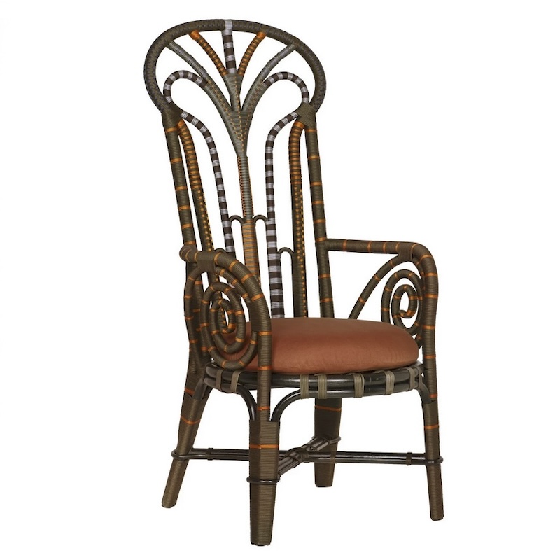 • Royal seating. A go-to brand for many interior designers, Currey & Co. showed its new Benin Throne chairs in brown and green hues, as seating fit for a king and queen continues to be on trend.
