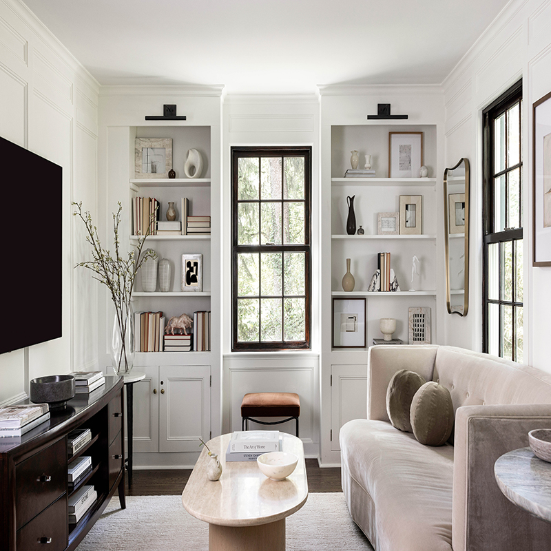 There isn’t much a good built-in can’t do. It can display art and family photos as easily as a gallery wall; it lets you use every inch of vertical space in a room; it acts as a chic accent wall without the need for a drastic new paint color.