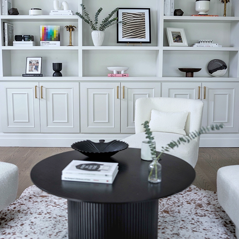 This new-construction home in Livingston took on an “effortless” quality under the expert hand of Michal Rubin of MR Interiors—and it was just to her taste, because she was designing her own home. She describes the built-in specifically as “the single best decision I made.” With cabinets and shelves galore, she need never run out of room.