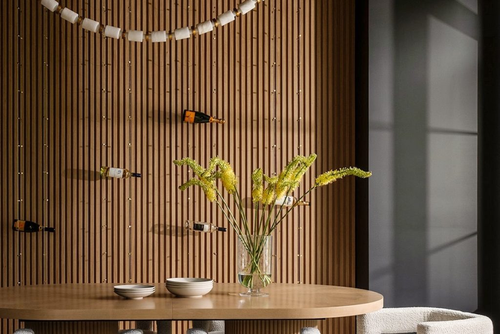 Throughout the spaces, Grommet and Wanat moved in sync, selecting materials and finishes that could shift in mood yet speak the same visual language.