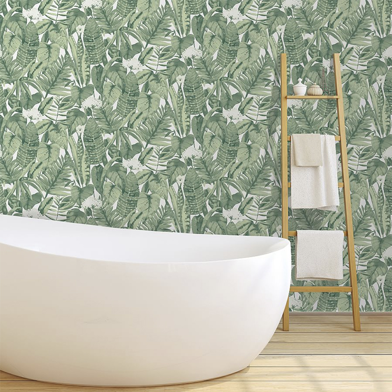 Bring new life to any room in the house with tropical jungle green leaf wallpaper. It’s easy to clean (just use a damp sponge), and the self-adhesive back makes it entirely and easily removable when the mood strikes.