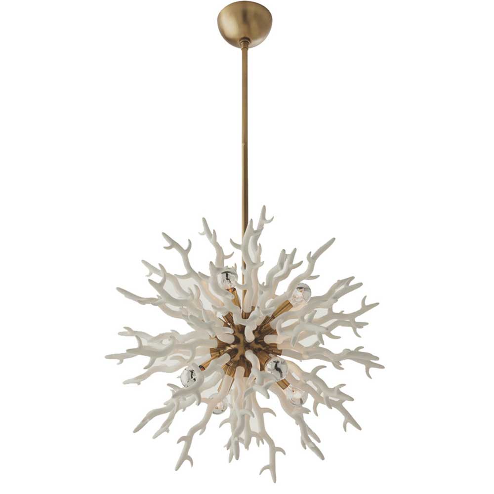 Need something nautical? Resist the rope and instead try this unique lacquered resin, coral-inspired chandelier, which has an antique brass center sphere. Available at shadesoflight.com.
