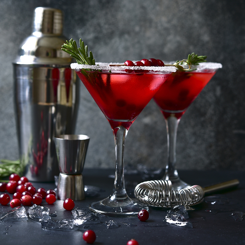 This cocktail, shared with us by Jed Kessler of Jed’s Party Services in Fair Lawn, puts a tart twist on a classic martini. We love a fresh rosemary garnish for the pop of green and the holiday aromatics.