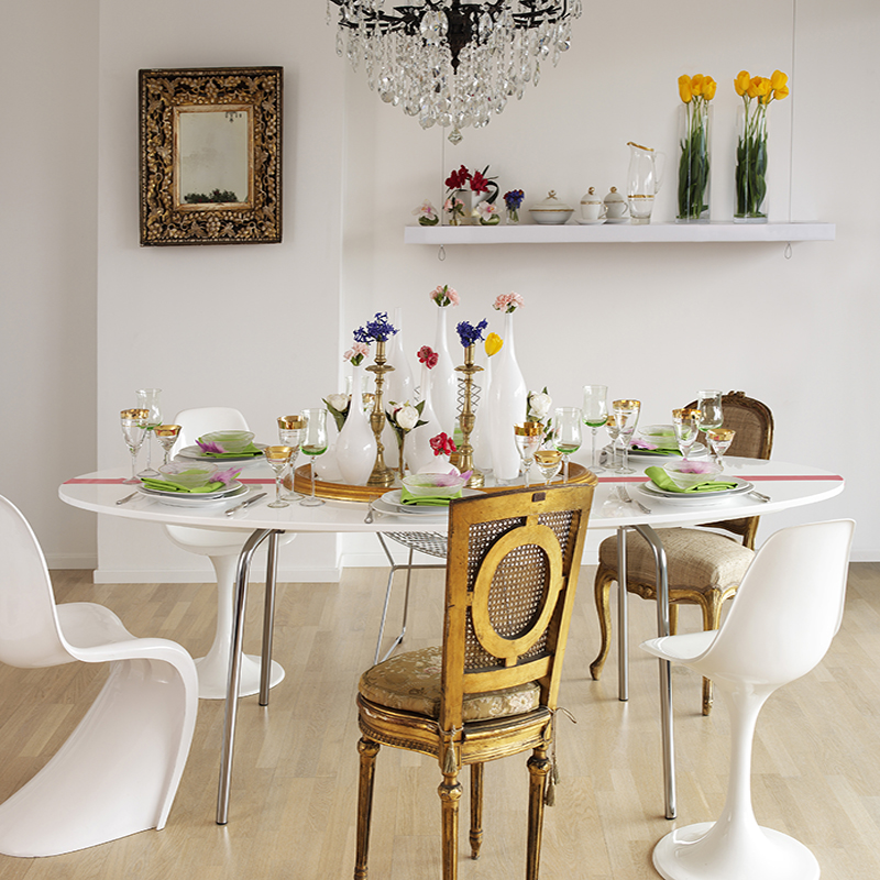 Love it: “I love the trend of mixing and matching different styles, textures and colors. It lets us create personalized, curated spaces for our clients. Think dining rooms with a table of one texture and color, guest chairs of a coordinating but distinct design and host end chairs upholstered in a custom fabric that brings it all together. It allows our homeowners to express their individuality and creates a timeless, fresh and inviting space.”