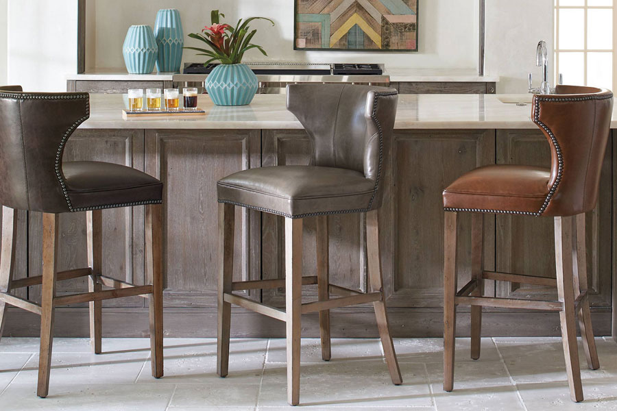 Top flight from Meredith is a barstool wrapped in leather that feels like a vintage bomber jacket and is styled with a swooping winged back and a solid hardwood frame to ensure a safe landing.