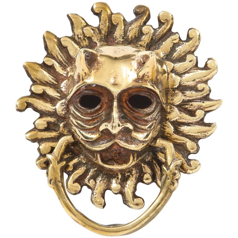 Circa 1940 Italy, this heavy bronze masquerone (grotesque mask) doorknocker will ward off unwelcome guests. Available at babounewyork.com.