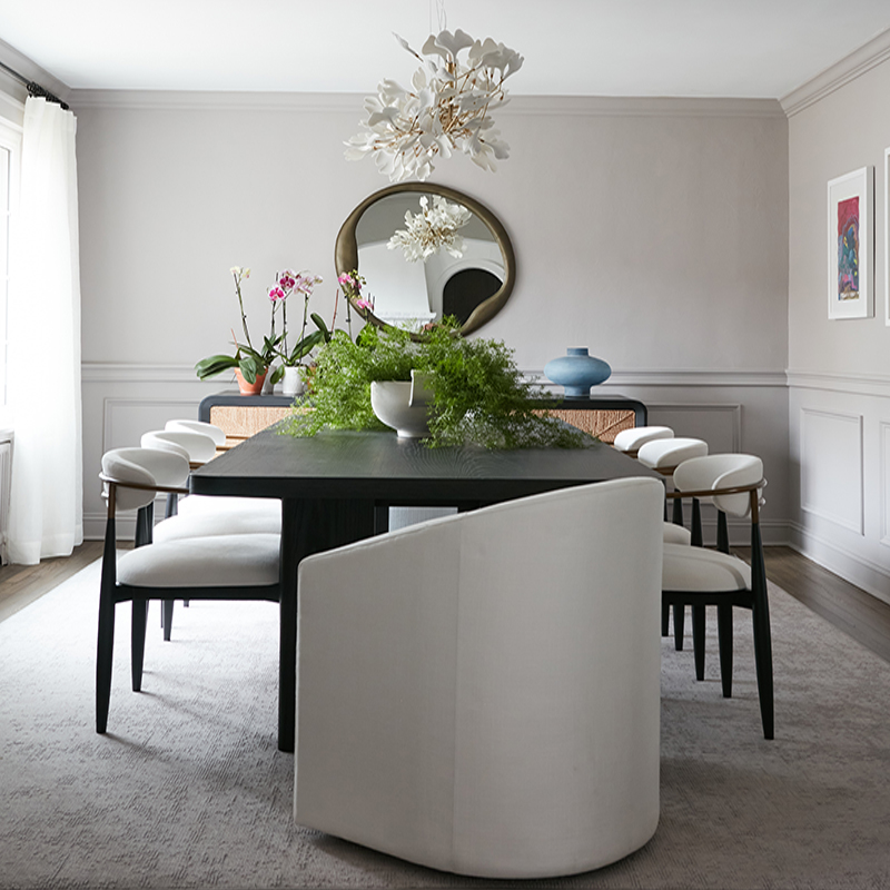 Creating a bridge between traditional and modern was the aim when Liz Curry, of South Orange-based Liz Curry Studio, was tapped to design the living and dining rooms of a 1930s Tudor in Millburn. The clients, young professionals with a toddler, two dogs and a cat, wished to respect the home’s character while imprinting it with their own contemporary sensibilities.