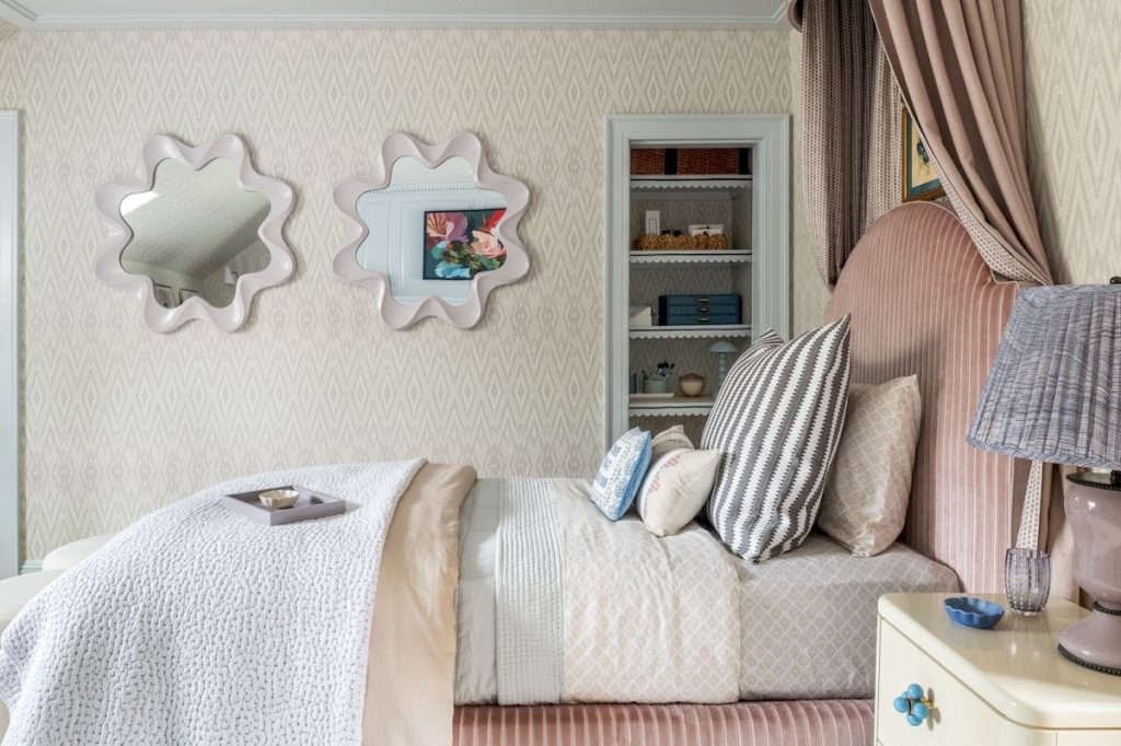 “The palette is playful but refined: soft purples, pinks and blues grounded by neutrals to feel feminine but not overly girly,” Cohen explains. “Antique pieces honor the home’s history, while modern elements keep the overall design fresh and timeless.”